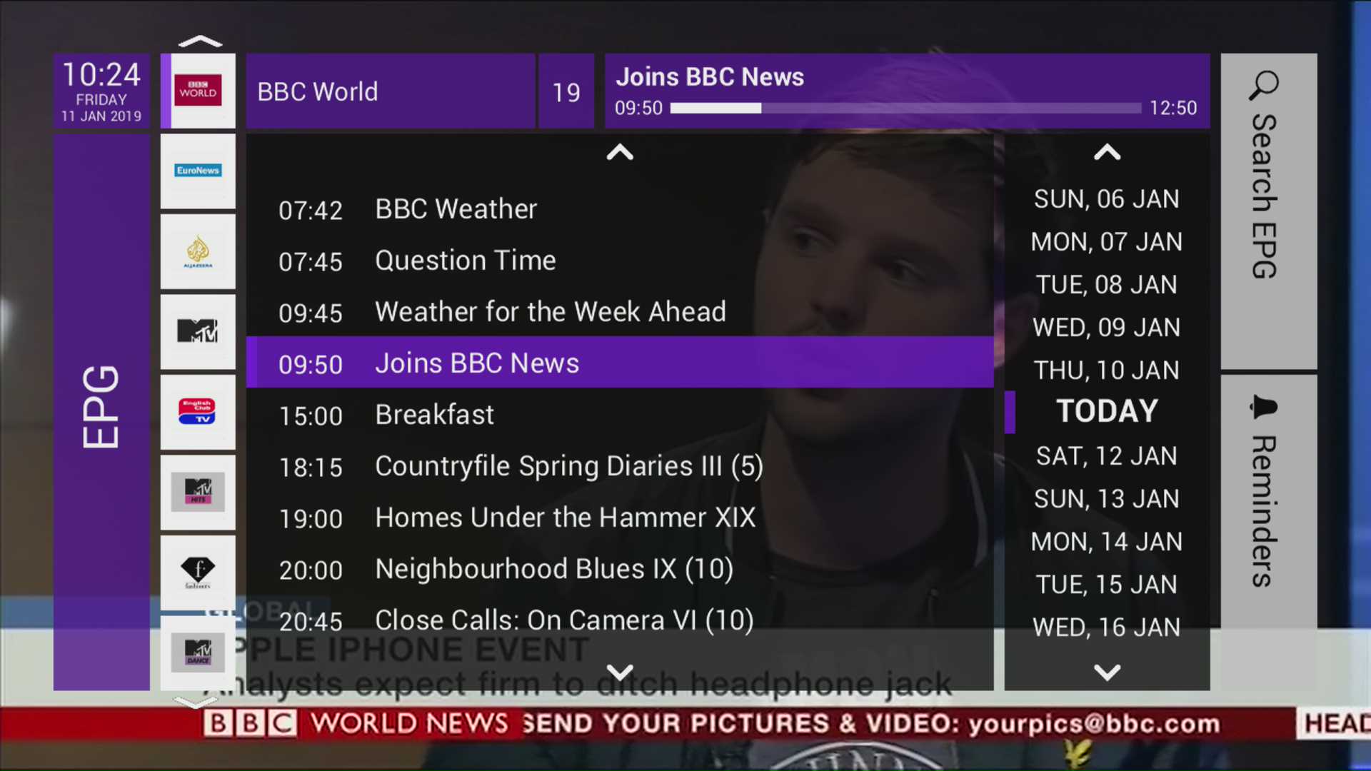 - EPG (vertical, horizontal, multi, mozaic)